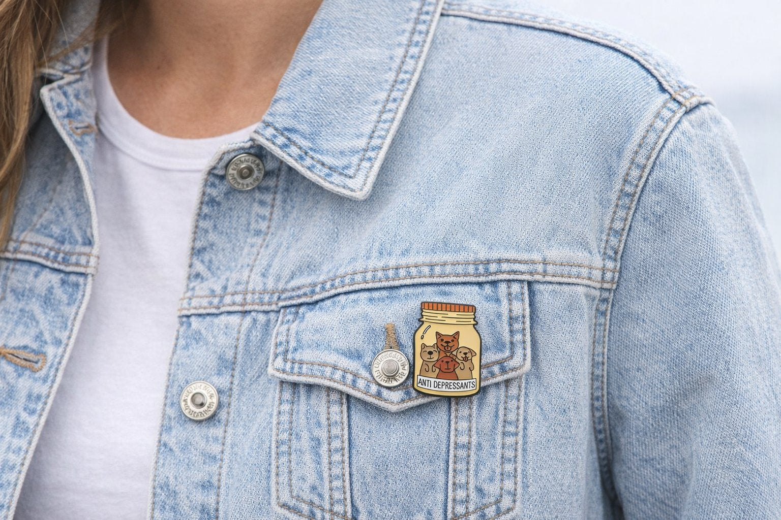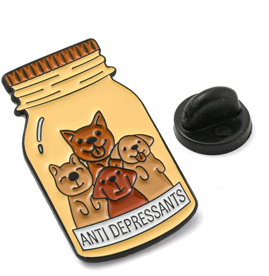 The Anti-Depressants Pin is a sweet, light-hearted reminder of the comfort, companionship, and quiet healing our pets bring into our lives.
