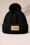 "Be Kind" Pom Pom Beanie in Black – Selfawear