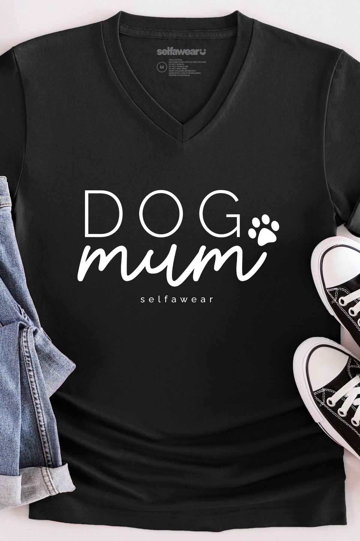 Dog Mum V-Neck T-Shirt Black | Selfawear®