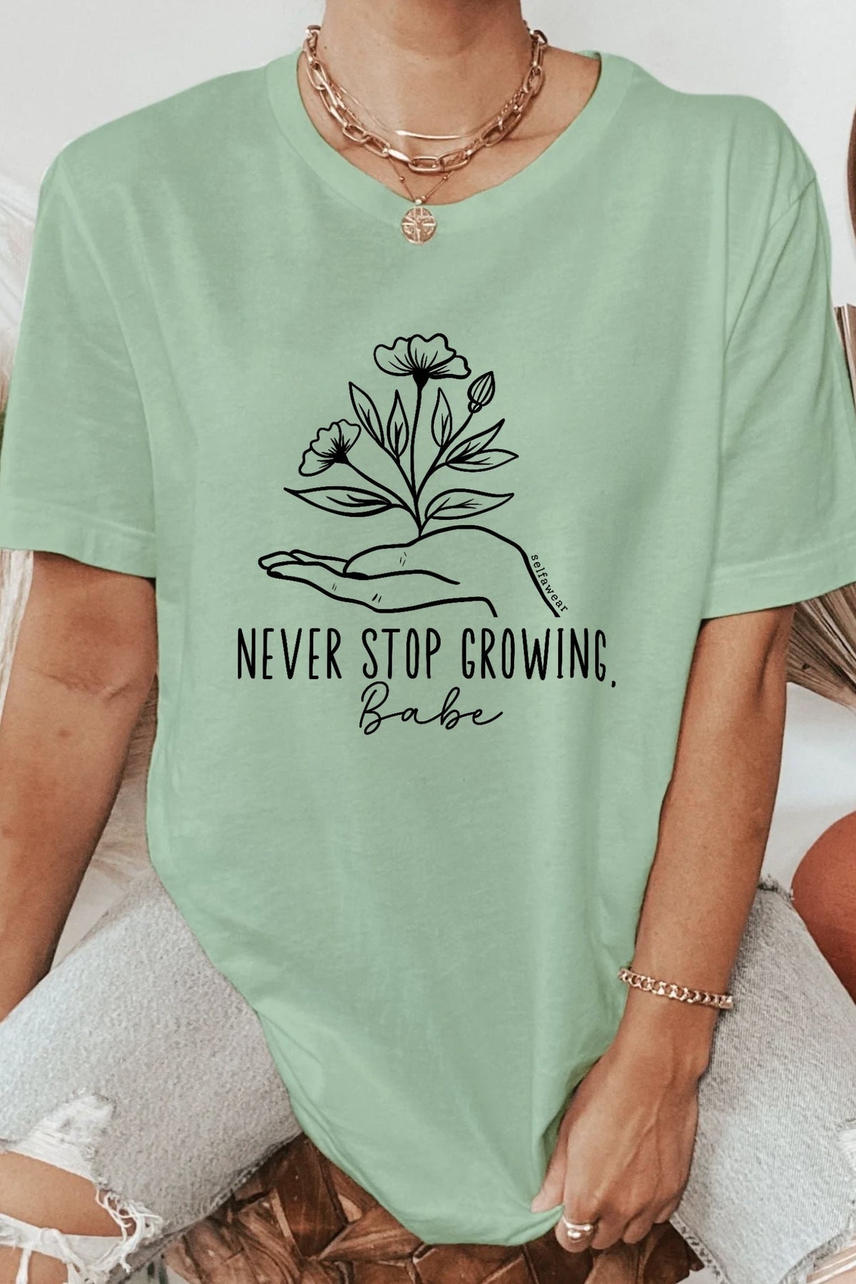 Never Stop Growing T-Shirt Matcha Shirts Selfawear